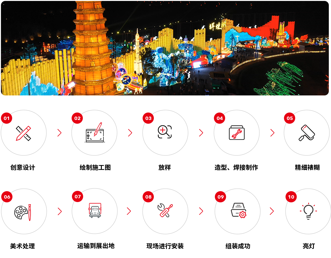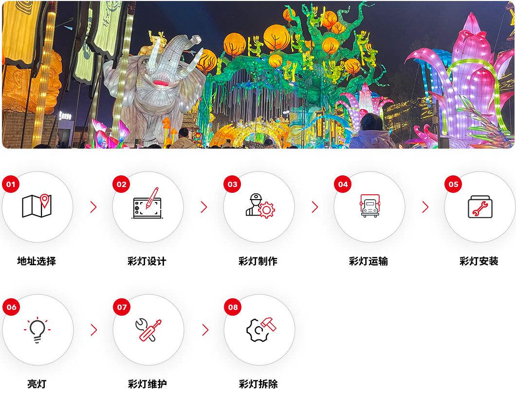 公司的專業(yè)管理團隊擁有30余年管理經(jīng)驗,有成熟的燈會全產(chǎn)業(yè)鏈服務體系,從事包括燈會選址、彩燈設計、制作、運輸、安裝、展出、守展、銷售、運營等全產(chǎn)業(yè)鏈業(yè)務內(nèi)容。