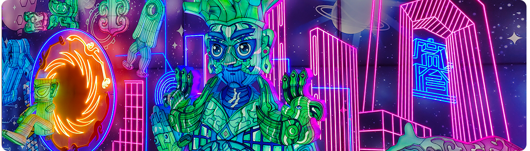 巧妙利用多種先進的現(xiàn)代光源、全息投影、結合傳統(tǒng)手工藝等成熟技術手段支持創(chuàng)意實現(xiàn)