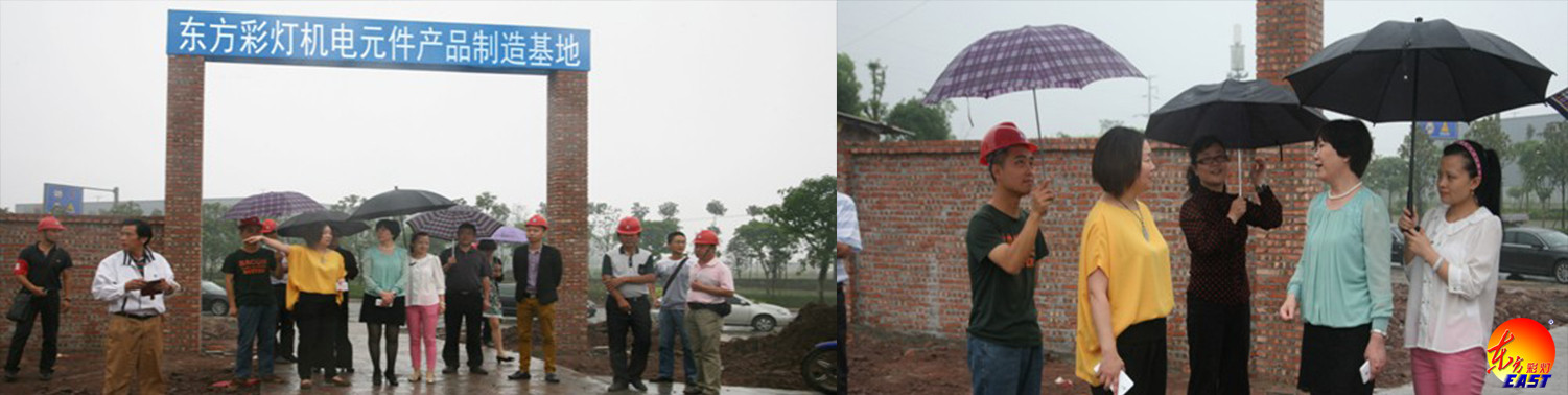 5月23日上午,市政府副市長石岷嘉帶相關(guān)部門領(lǐng)導冒雨到板倉高新科技園區(qū)視察自貢燈貿(mào)有限公司在建的“東方彩燈”機電元件產(chǎn)品制造基地。
