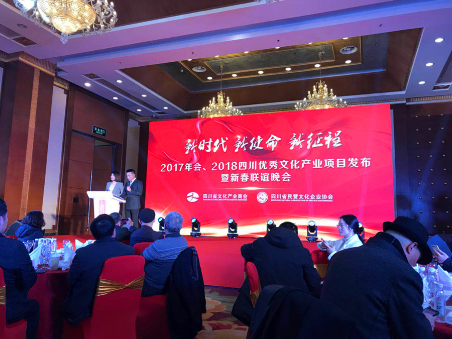 2018年1月25日,四川文化產(chǎn)業(yè)商會(huì)、四川省民營(yíng)文化企業(yè)協(xié)會(huì)“新時(shí)代、新使命、新征程——2017年會(huì)、2018四川優(yōu)秀文化產(chǎn)業(yè)項(xiàng)目發(fā)布暨新春聯(lián)誼會(huì)”在成都世紀(jì)城洲際酒店隆重召開(kāi)。