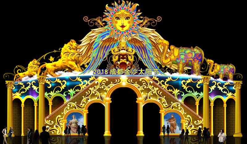 由自貢燈貿(mào)集團股份有限公司承制的2018成都金沙太陽節(jié)燈展目前已進入緊張有序的現(xiàn)場安裝階段。本次太陽節(jié)共分《龐貝文明》、《古蜀文明》、《太陽文化》、《傳統(tǒng)民俗》、《成都與世界》五大特色主題板塊共六十余組特色燈組,每一板塊都深刻卷寫著古蜀文明和龐貝文化的悠久與輝煌。
