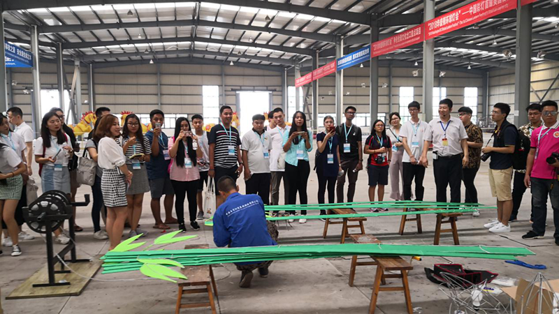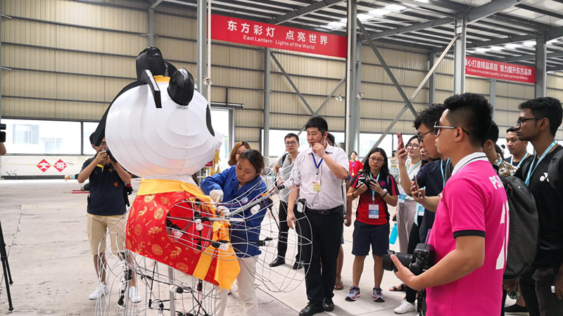 走進(jìn)東方彩燈出口基地,來到“東方彩燈 點亮世界”項目境外燈展制作現(xiàn)場,青年朋友們近距離的詳細(xì)了解了彩燈的制作流程和工藝。交流團(tuán)成員為東方彩燈足跡遍布世界30多個國家咋咋稱奇,為燈貿(mào)集團(tuán)精妙絕倫的彩燈頻頻點贊。