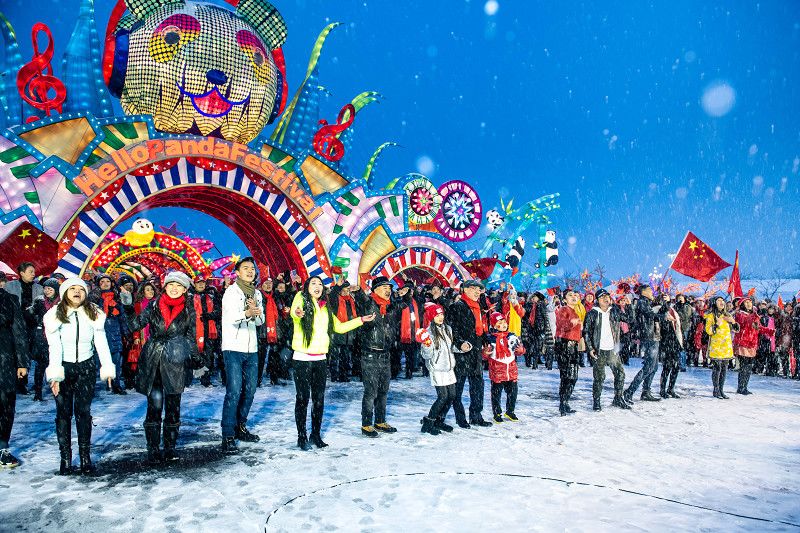 自貢燈貿集團承制的北美地區(qū)規(guī)模最大的彩燈盛會—“天下華燈”嘉年華(HelloPanda Festival)燈展場地于1月18日舉行了“點亮2022北京冬奧”文化日活動,中國駐紐約總領事黃屏大使和數(shù)千名當?shù)孛癖婟R聚這里,通過千人快閃、慶典晚會和游園賞燈祝福北京冬奧。這也是2022北京冬奧會和冬殘奧會在海外開展的首個大型公眾宣傳活動。