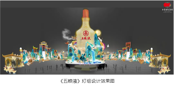 千年悠悠酒香,百年五糧精華。自貢燈貿集團承制的大型場景式燈組《五糧液》,主燈采用第八代五糧液酒瓶運用自貢彩燈傳統工藝捆扎而成巨型五糧液,輔以仙山、仙境、巨龍騰越氛圍闡釋五糧傳奇,杯酒時光,百年味道。周邊群燈組展示封存在時光中的“活窖池”--利川永、張萬和、劉鼎興、天賜福、聽月樓、全恒昌等八家明代釀酒作坊,歷史悠久的古窖池群講述著傳承幾百年的五糧液釀酒工藝,折射幾千年氤氳酒香的中國酒歷史和酒文化。歲月悠悠,五糧芳香的故事將不停地續(xù)寫,在未來再創(chuàng)輝煌,歷久彌香,延綿不斷地傳承這千古佳釀。