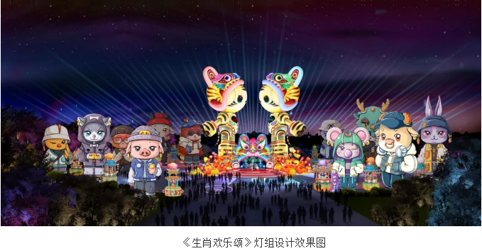 自貢燈貿(mào)集團(tuán)承制的華僑城·第28屆自貢國際恐龍燈會(huì)大型場景沉浸式大型燈組《生肖歡樂頌》以“虎年歡歌千里錦 十二生肖賀新春”為主題,呈現(xiàn)十二生肖動(dòng)物的現(xiàn)代版組合,子鼠丑牛,寅虎卯兔顛覆傳統(tǒng)生肖神話形象,以其炫目的賽博朋克感,獨(dú)一無二的國潮風(fēng)格,酷炫來襲。蘊(yùn)含國潮新風(fēng)內(nèi)核社會(huì)圖景的《生肖歡樂頌》揭開了獨(dú)具特色的傳統(tǒng)生肖文化潮玩一角,必將成為本屆燈會(huì)的打卡勝地。