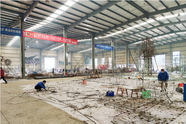 走進(jìn)燈貿(mào)集團(tuán)生產(chǎn)現(xiàn)場,呈現(xiàn)眼前的是一篇繁忙景象。近200名東方彩燈的工匠按照放樣、造型、噴涂、電器安裝、裱糊、美術(shù)處理等生產(chǎn)流程,井然有序、熱火朝天地開展生產(chǎn)。但見,造型師焊槍焰火、飛火流星;電器師神工妙力,串接璀璨;裱糊師巧奪天工,斑斕溢彩;美術(shù)師鬼斧神工,爐火純青......