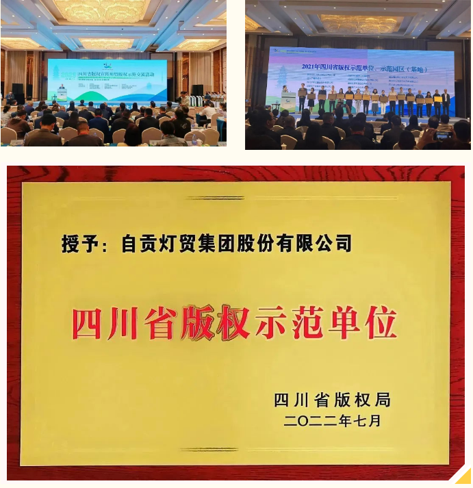 在第23個(gè)世界知識(shí)產(chǎn)權(quán)日來臨之際,由中國版權(quán)協(xié)會(huì)、四川省委宣傳部版權(quán)局主辦,綿陽市委宣傳部承辦的“四川省2023版權(quán)宣傳周暨版權(quán)示范交流活動(dòng)”于2023年4月25日在綿陽舉行,活動(dòng)以“推動(dòng)版權(quán)創(chuàng)新創(chuàng)造 助力文化自信自強(qiáng)”為主題,以線上線下聯(lián)動(dòng)方式同步推出?;顒?dòng)當(dāng)天,省版權(quán)局為2021至2022國家級(jí)、省級(jí)版權(quán)示范單位和示范園區(qū)(基地)授牌。自貢燈貿(mào)集團(tuán)股份有限公司參加了活動(dòng),并獲頒“四川省版權(quán)示范單位”榮譽(yù)稱號(hào)。